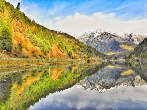 每逢秋季,达古冰川周围的原始森林便会变得五彩缤纷,层林尽染,呈现出一幅幅美丽的画面。