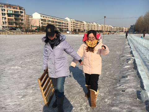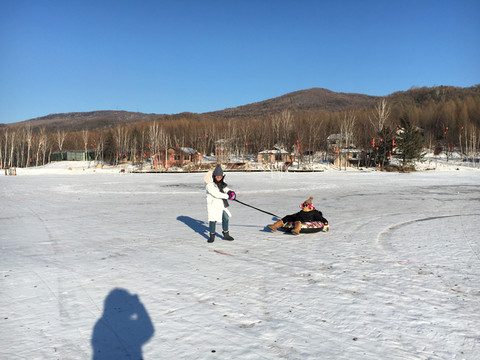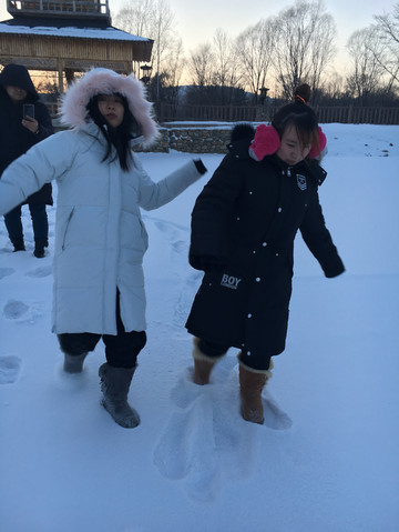 12:00餐馆出发,乘坐包车,前往伊春区幸福街,玩爬犁。