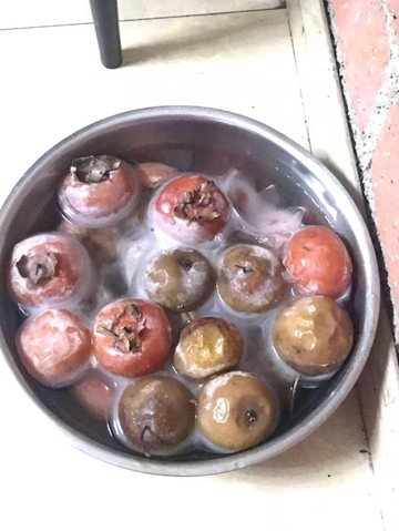 饭后,品尝一下冻柿子、冻梨。