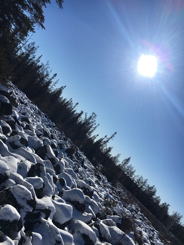 冬季是大平台出片的好时节。在这里拍雾淞一绝。大家都知道雾淞是由水力发电厂的水所形成的,大平台地处当地的最大河流库尔滨河沿岸,库尔滨河共有四道湾,每道湾均建有一个水力发电厂。所以每道湾都是一个独立的中心景点,这四个中心景点绵延20公里,走到哪儿都能拍到白茫茫的雾淞,再加上地上的石海被厚厚的白雪压得变成了一个个形态各异的上白下黑的蘑茹状,景色绝佳。