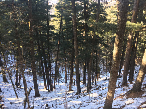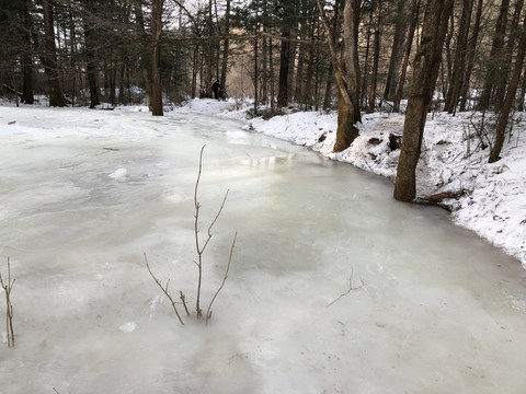10:00到达五营国家森林公园,园内长满红松,积雪较深,步行注意安全。