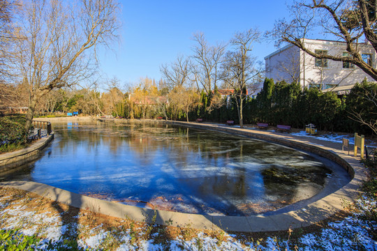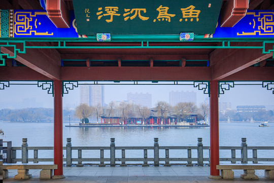 柔和的阳光给大明湖的冬景增添了几分明媚,偶然的几声鸟叫和闲庭漫步的游人经过,时光清浅,岁月静好。