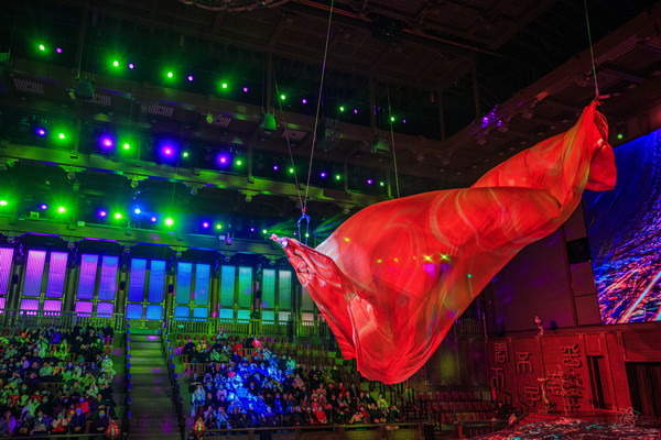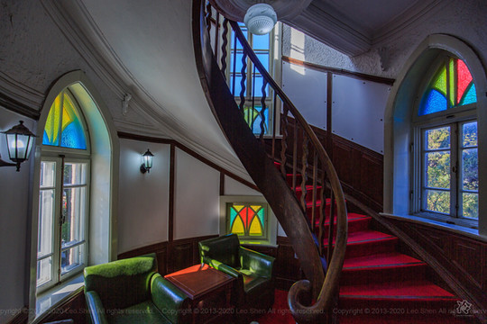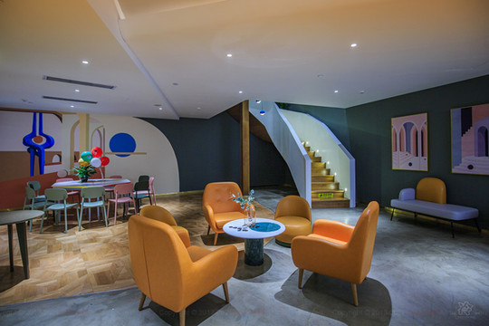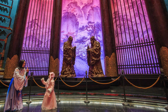 三层设有艺术茶室,绘有大型壁画--日月同辉。