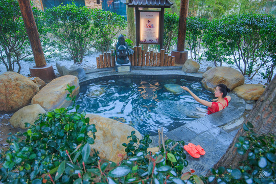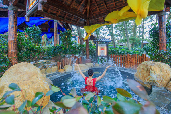 度假村同时拥有大型的室内温泉馆和室外温泉区,包括特色鱼疗、中草药系列、美容养颜系列、SPA水疗系列、世界风情浴、四大美人汤、太极八汤为特色的功能浴池多达66个,光是走上一圈都要花上个把小时,要想一次性走全所有的泡池也是一个不小的挑战。