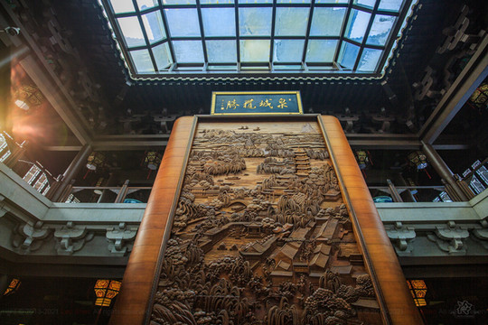 超然楼作为大明湖景区的制高点,巍峨挺拔,气势雄浑,楼内的历史文物和雕画集中展示了泉城美景和历史文化,不仅反映出济南的政治、礼仪、文化,更展现了济南人和这方水土的和谐,刻画出老济南的市井生活。