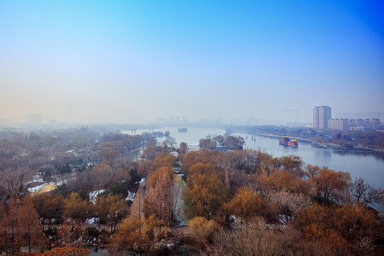 饭后沿着芙蓉街直接步行到了大明湖,来到济南你也一定会想要看看大明湖的“夏雨荷”吧,当然其实大明湖本身的看点也不仅仅在夏天的荷花,如此规模的城中湖花园也算是个中的翘楚,沿着两边的河岸步行,即便是在冬日里,依旧是相当的风韵十足,看着湖面往来的游船,勾起了我对于众多影视剧的回忆。