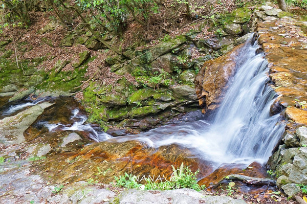 突闻水声,原来是第二挂瀑布,羞涩的隐藏在树林之间,没想到这个楼梯拐角是这挂瀑布的绝佳机位,能以最好的角度欣赏她的美丽。