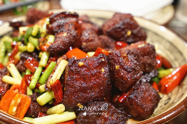 黑猪肉,经过油炸后的黑猪肉再炒,不会觉得油腻,反而脆脆的很好吃。