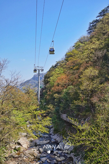 跟着索道的轨迹,我们在山谷间向下绕行。