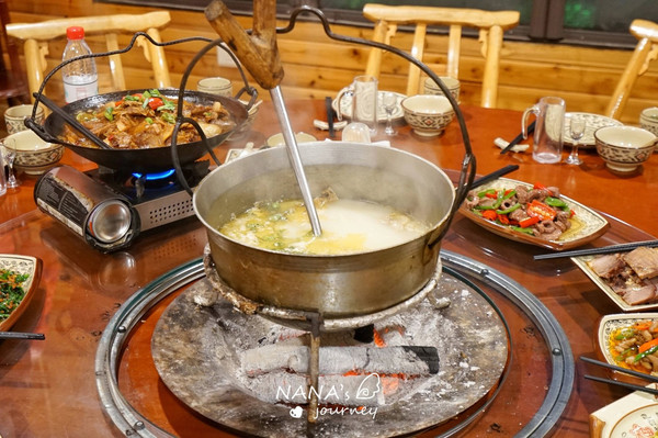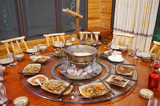 天堂寨所在地最特色的当地吃法——吊锅,吊锅在中间,用炭火煮着浓汤,周围是各种小菜,是还有春寒的季节,最美妙的伴侣。