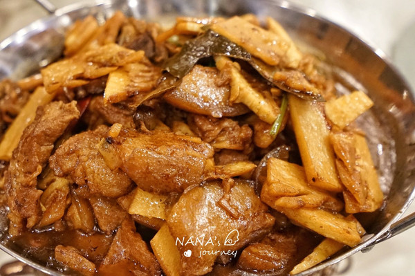 山笋烧肉。春季最经典的一道菜,无论是入味的肉,还是香脆的笋,都是大家秒速光盘的对象。