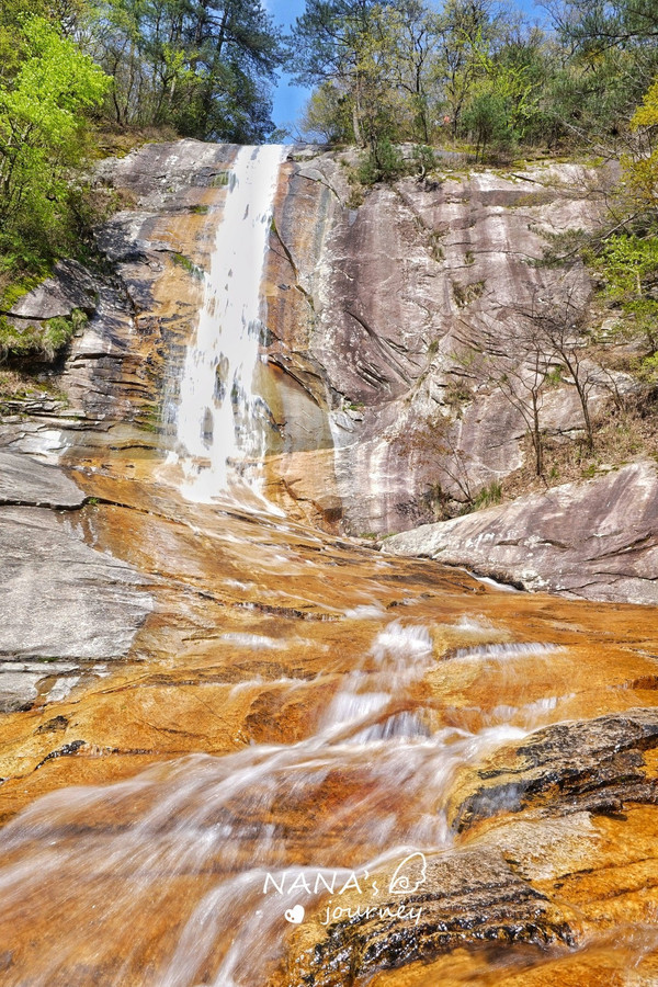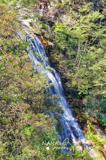 如果要说最妖娆最妩媚,就是索道站下的这个瀑布了,虽然是随着石壁的斜坡奔流直下,但曲折动人,仿佛s型的女子坐姿,非常美丽。其下有巨石可玩耍可耍水,但必须注意安全。