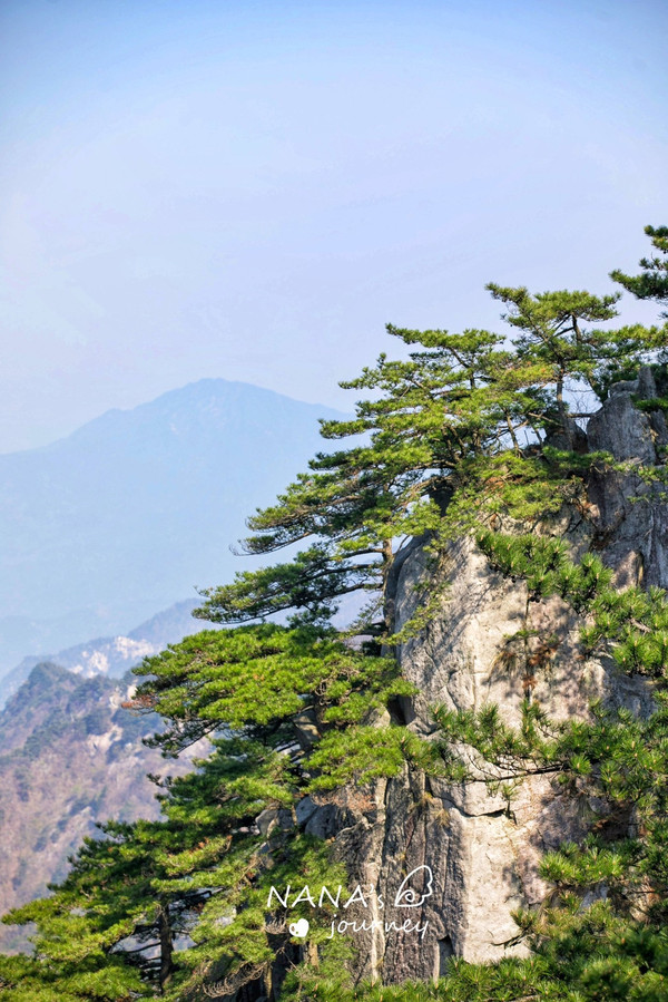 坐着缆车,我们先直达了山顶,山顶是一条狭长的路,两侧景色不同,如果要说特色,必须是奇松怪石了。