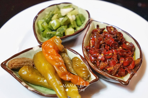 当地小菜三小碟,农家自己腌的,虽然看似是其他菜的配料,实际上做的非常美味,很下饭,特别喜欢吃切成段的辣椒酱。