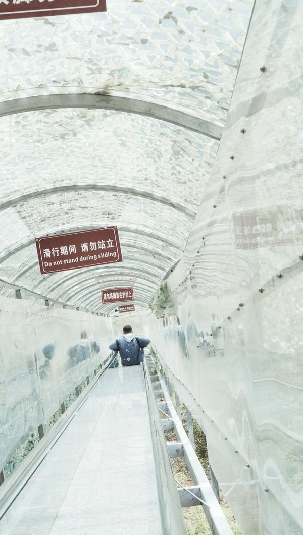 最后下山的方式也很有趣,可以选择玻璃滑道感受一场速度与激情,他们会提供滑道所用的裤子,完全不用担心自己的裤子有磨破的风险!
