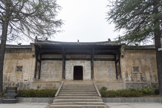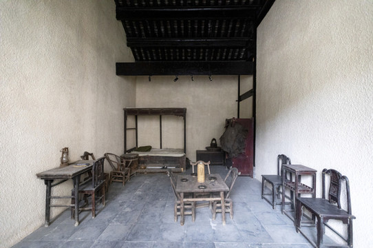 大王庙陈列室位于四合院正上方,为3间青砖木柱斗拱瓦顶结构。房顶大梁上书写的“大清同治岁次辛未年孟夏彀旦皖源众人仝建”的朱红大字清晰可辨。