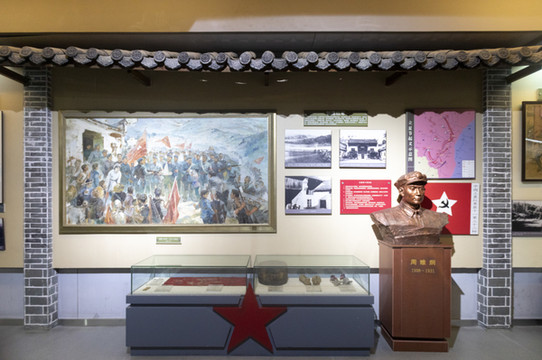 土地革命战争时期展出立夏节起义和六霍起义,红11军32师和33师的建立,豫东南和皖西根据地的开创,鄂豫皖苏区的形成,三次反围剿的胜利和红军主力转移,创建和重建了红25军、红28军,反映了走工农武装割据的道路,革命的星星之火可以燃成燎原之势,充分显示了 金寨 是“红军的故乡”;