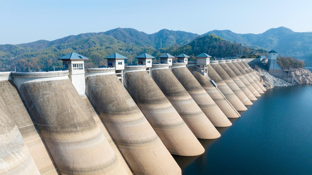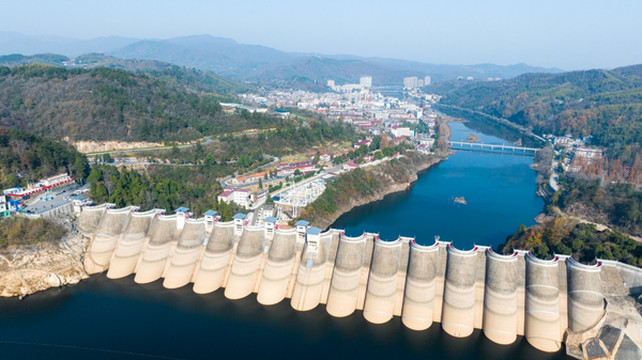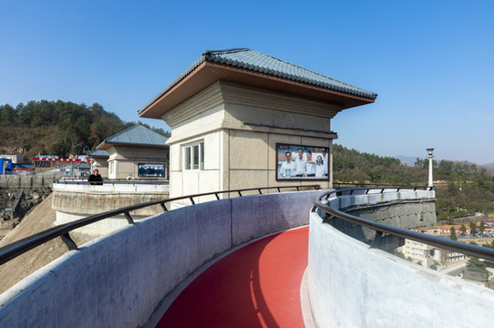 水库大坝犹如一道凌空飞跨于峡谷之上的彩虹,显得宏伟壮观,气势磅礴。为连拱坝,最大坝高88.24米,全长443.5米,雄伟壮观、气势磅礴。
