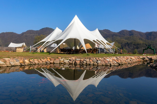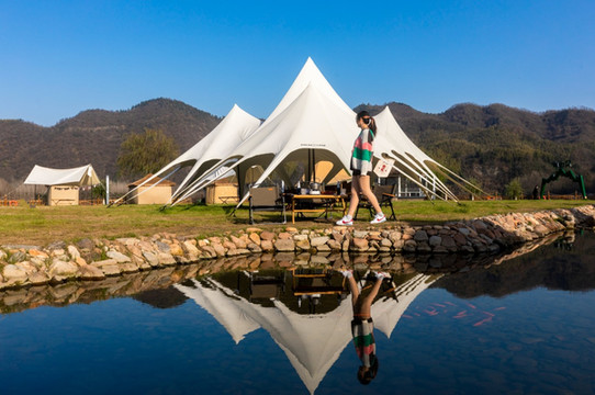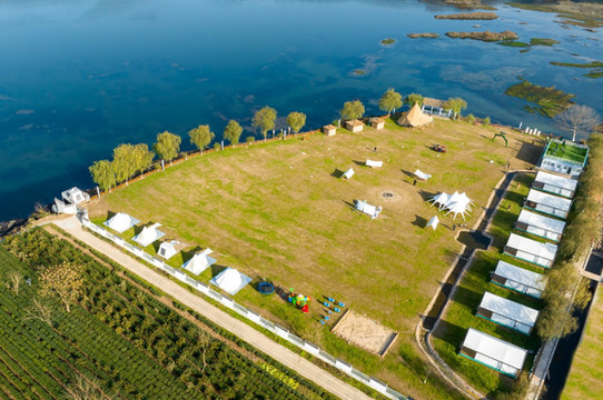 营地不仅要各种轻奢帐篷、 蒙古 包、天幕、茅草屋等露营装备,完全可以直接领包露营,旁边的儿童乐园、酒店帐篷等集休闲、娱乐、亲近山水为一体,是人们周末亲友团聚、放飞心情的理想场所。