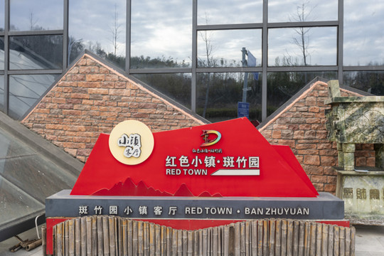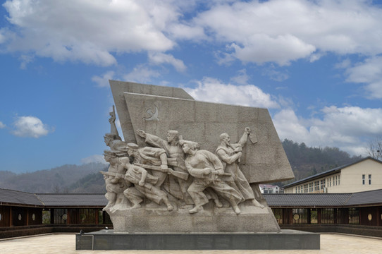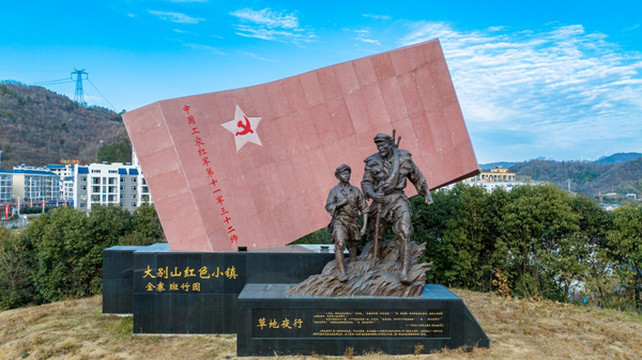 村口的大型雕塑,讲述着斑竹园红色文化故事。