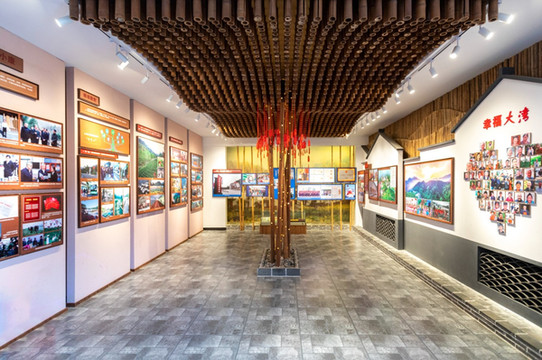 游客接待中心的展览中,通过系列图片展示了 大湾 村的贫困记忆, 大湾 村的小康之路。