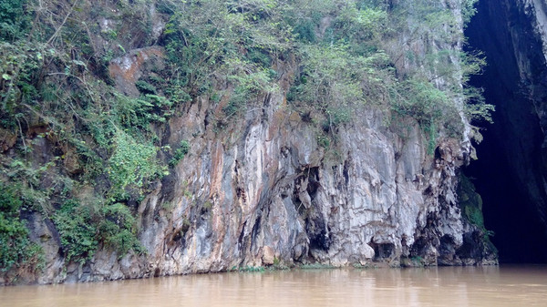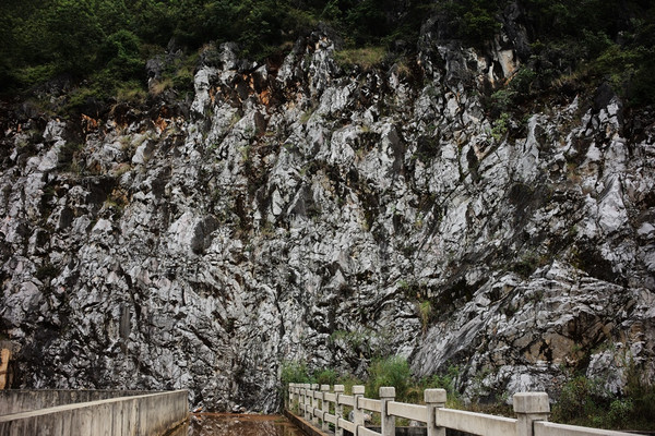 坝桥对面的石壁: