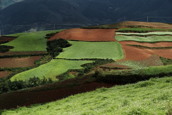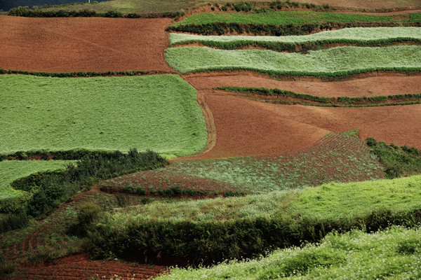 一。 东川红土地因为其泥土呈红色而得名,加上耕作后有绿色作物,黄色作物(收割季节),百色作物(油菜花花色)等调色,依然成为当今国内颇有名气的摄影基地之一了。最佳季节4~5月份,10月中旬到11月底,能看到红,黄,绿多种颜色。我到的稍微早了点,缺金黄色。