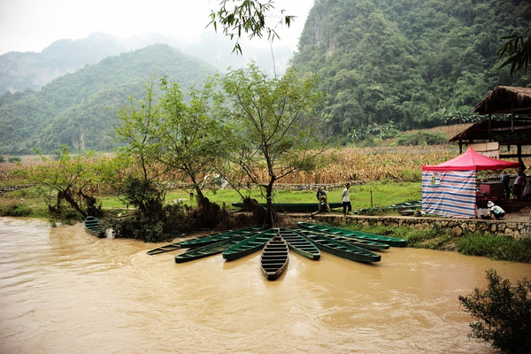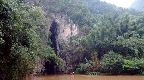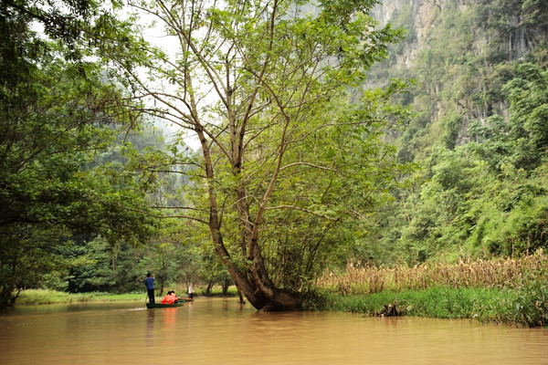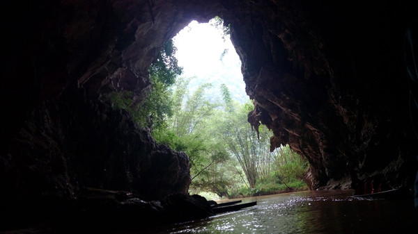 进村坐船,石洞口: