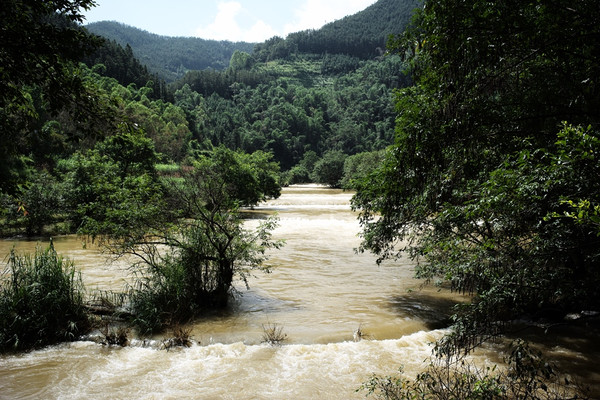 多依河景区空无一人(可能还没到10.1),令我有点小内疚,花了50元门票一人独游:前段时间刮台风影响,发大水,使得多依河水泛黄了。