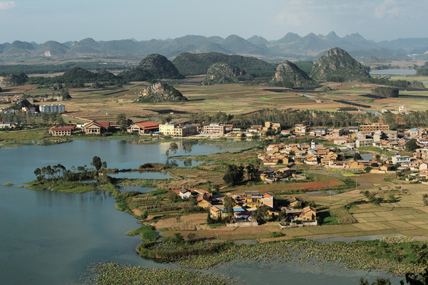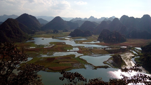 二。 看完东川日出,吃过早饭,上路开车往普者黑。历经6小时左右,到普者黑是下午4/5点,正是拍照好时间。需要爬2千多台阶的青龙山(毋须门票),气喘吁吁的来到观景台拍普者黑全景。