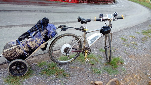五。 一个上午就把坝美玩完了,午饭过后,就启程赶往广南县八宝镇 - 号称小桂林的地方。本来按照导航软件,是绕道走国道+省道:160公里。而在一个叫珠街的岔路口问了加油站的同志,被告知走另外一条路更近,放弃导航听之。后来发现虽然是走了一个直线省了几十公里,但是又是县道并且是翻5座大山的盘山路,把我彻底弄崩溃。骑到最后一座山,实在蹬不动了,上坡就推,下坡骑车冲。从中午一直起到晚上10点才到三宝镇。不过夜里的山路既紧张又刺激,向前看是我那超亮的车灯照亮5米开外,往后看一片漆黑,只听耳边无数虫鸣和呼呼的山风。