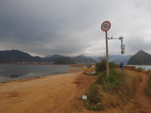 湖泊到这里是尽头,其中,对着公路这边堤坝中有个大闸看来是湖水的出口。