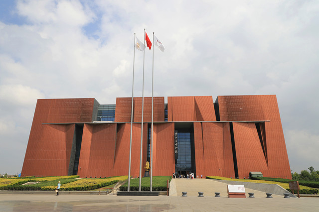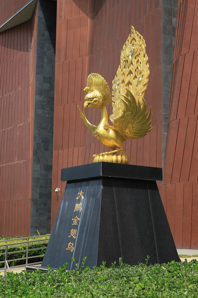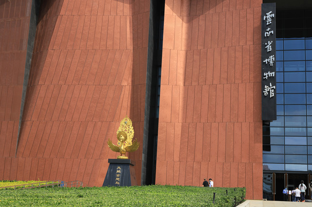 博物馆门口矗立着博物馆镇馆之宝之一的“大鹏金翅鸟”(复制品)