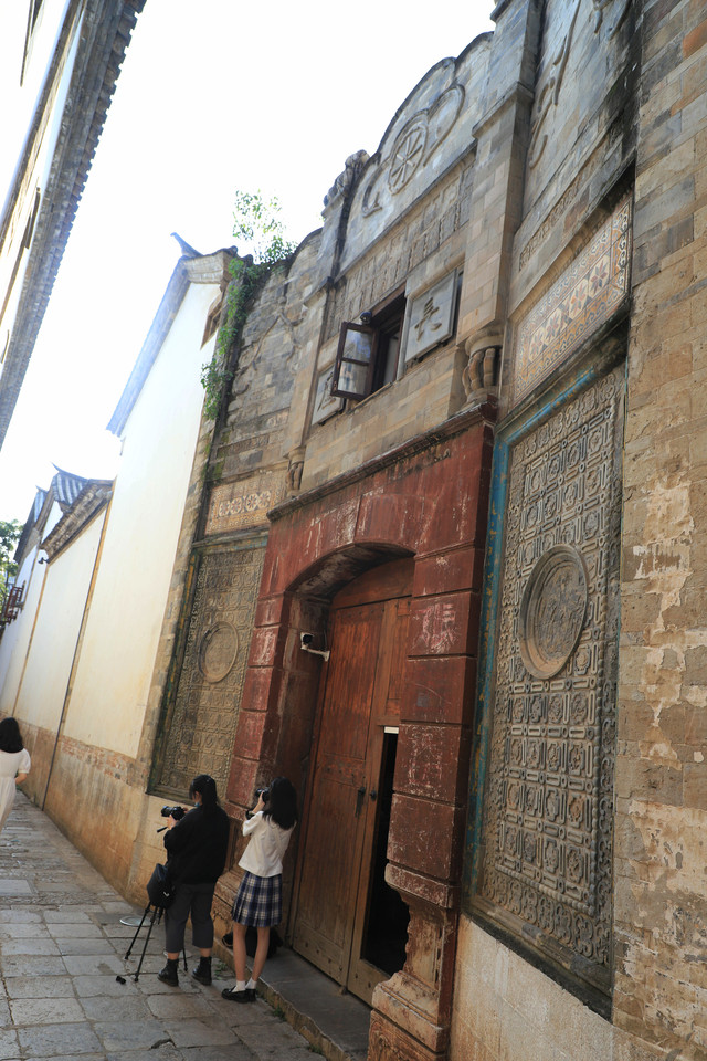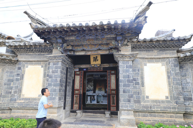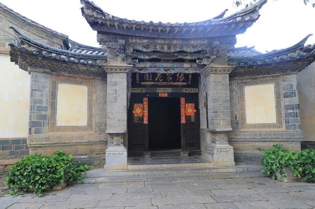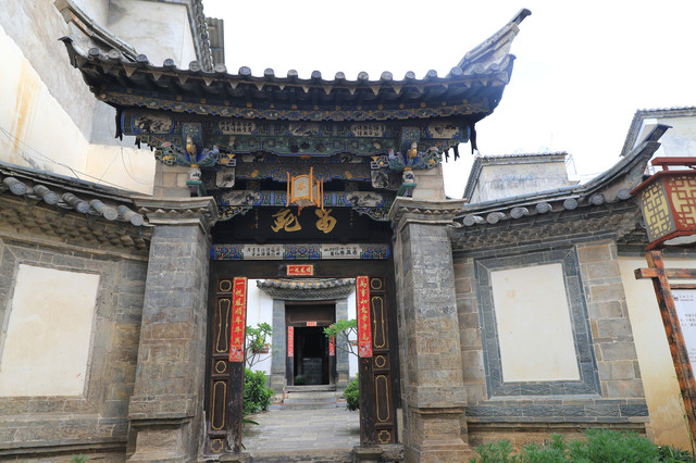 “福春恒商号”旧址 ,建于1924年,八字形式总门宽阔宏伟,原有的砖雕和人物造像已经被毁。可惜大门紧闭无法入内参观。福春恒商号于光绪二年(1876年)由清腾越总兵蒋宗汉创建,总号设下关,分号设昆明、成都、香港和缅甸等地。主营丝绸、珠宝、药材、土特产等,兼营钱庄汇兑业务。1928年总号迁至本宅,1937年倒闭。
