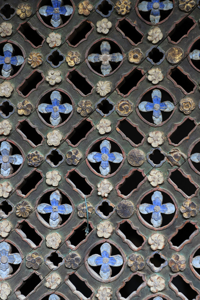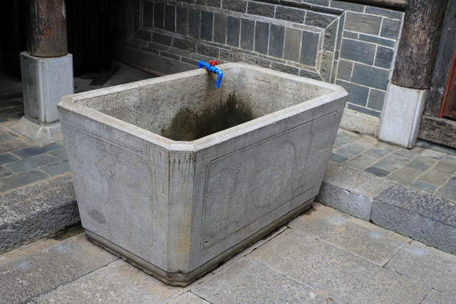 该宅院总面积375平米,坐北朝南,呈现“三间四耳倒八尺”格局,是典型的“一颗印”民居。檐下花坊、抱头梁、垂柱和格子门均有贴金的木雕,工艺精美考究。
