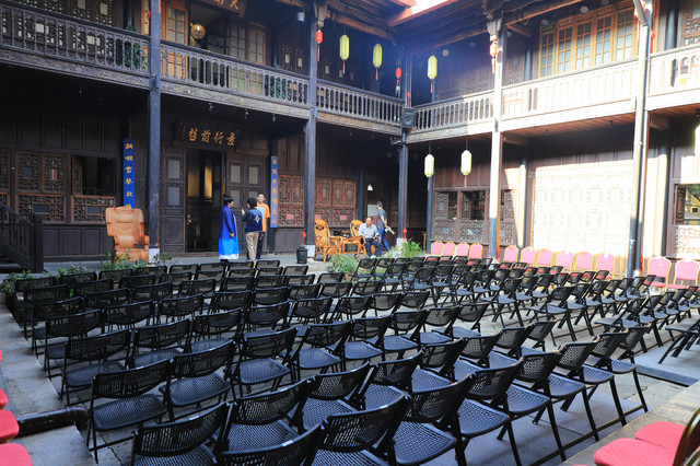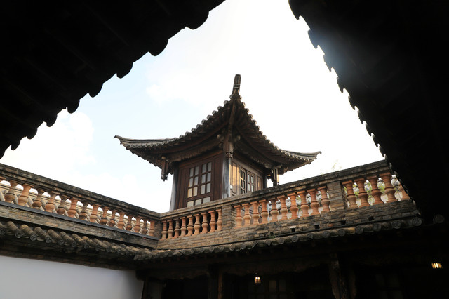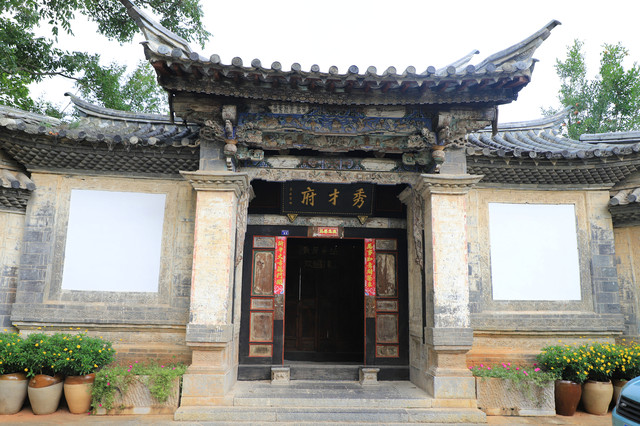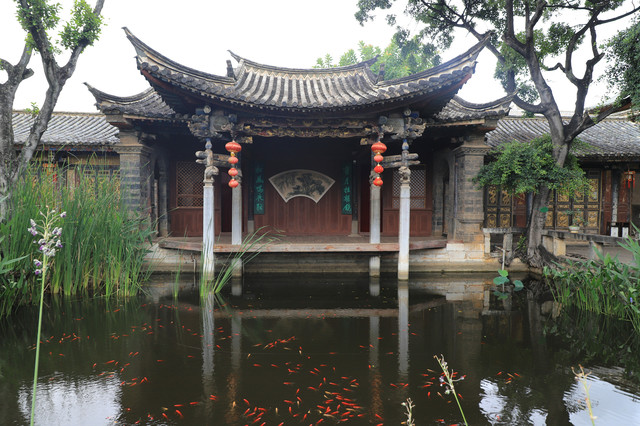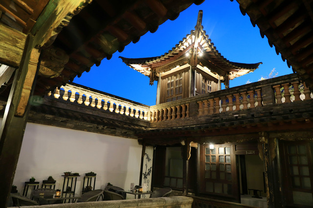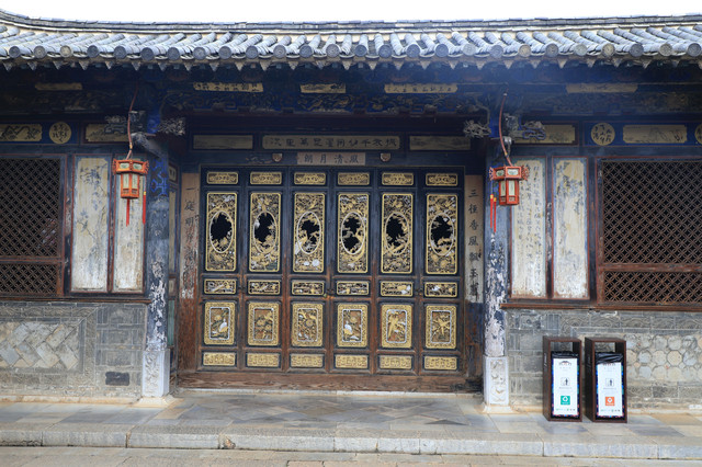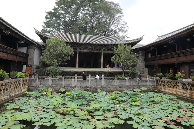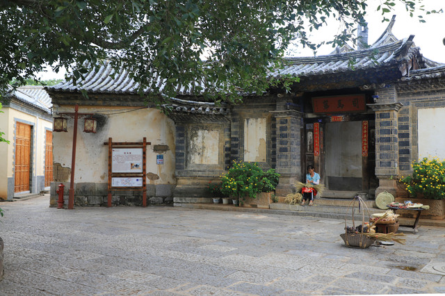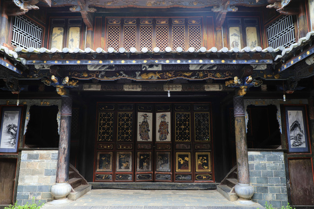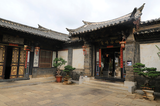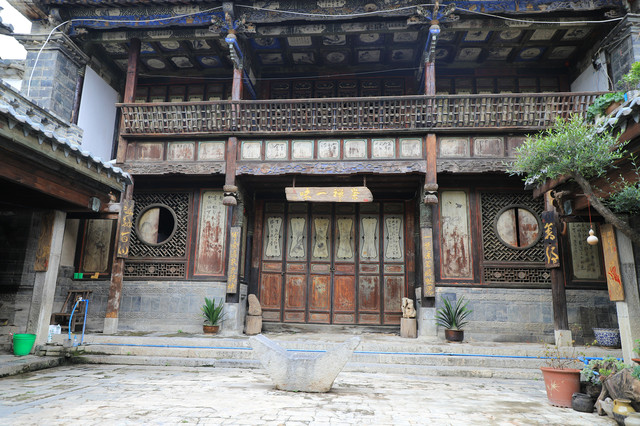 大院为2层木楼房四合相通,中间一个200平米的青石板天井,雕梁画柱工艺精湛,是白族民居经典建筑