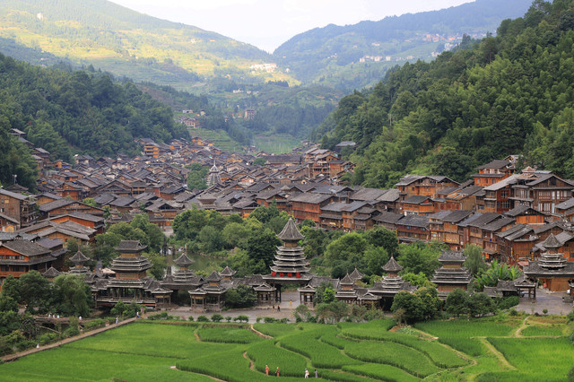 肇兴侗寨,位于贵州省黔东南州黎平县,是黔东南侗族地区最大的侗族村寨。肇兴侗寨四面环山,寨子建于山中盆地