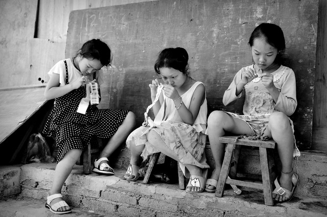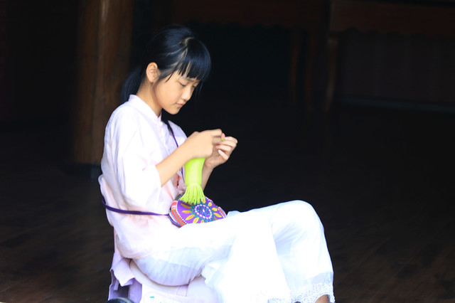 寨中的小女孩大多都会刺绣,小小年纪,神情专注