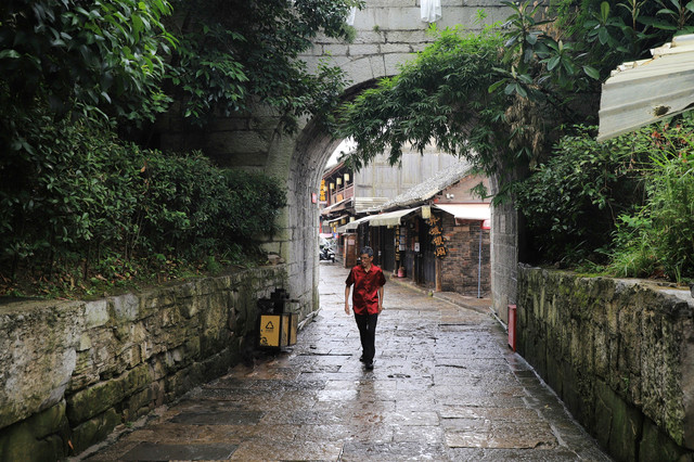 走在悠长的青石路上,街两边的店铺有的已经开始营业,街上游客也慢慢开始多了起来