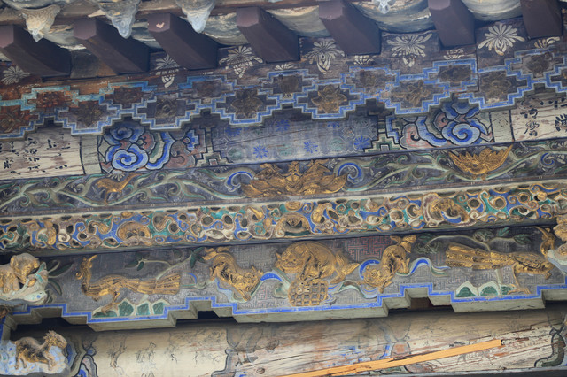 房子已经很破败了,但古老精致的木雕,精心彩绘的梁柱斗拱,透过厚厚的尘封仍能想象昔日的繁华