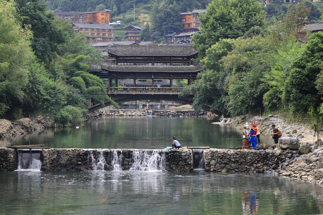 如今,这五座风雨桥成为了西江苗寨的一道风景线,是游客争相留影的热门之地