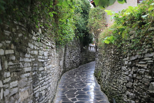 街巷以条石、块石、团石和不规则石块用糯米浆、桐油、石灰粘合砌筑,其石材运用和砌筑方法多变,使石巷的细部纹理显得十分丰富,兼具自由与规则的特点,显得静谧悠长。