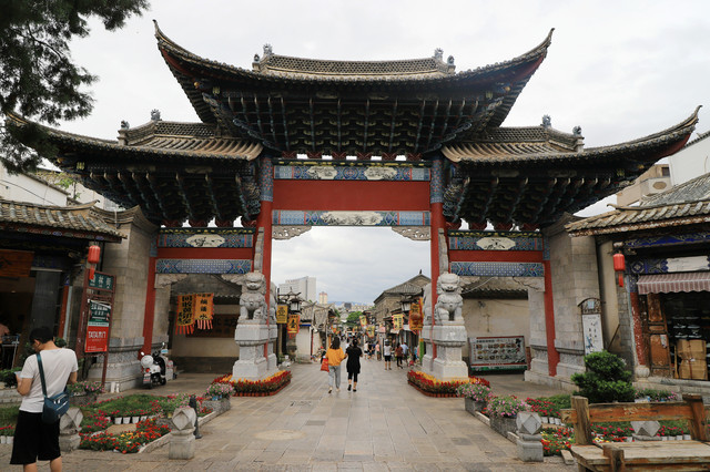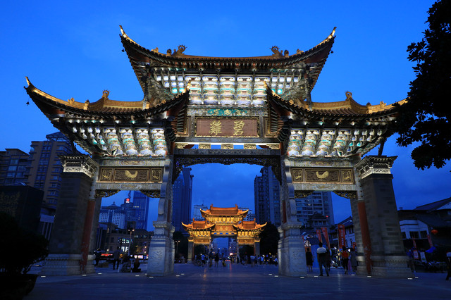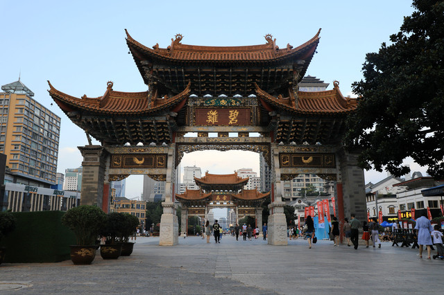 金马碧鸡坊始建于明朝宣德年间,至今已有400年的历史,可惜古老的金马碧鸡坊在10年动乱中被拆毁,现在的金马碧鸡坊是1998年在原址按原风格重建的。