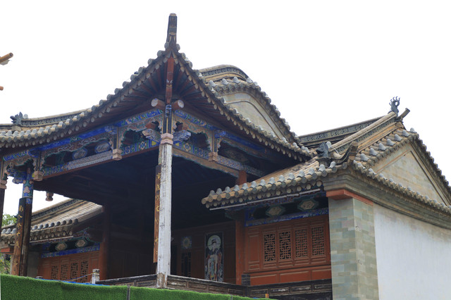 法定寺 始建于宋,后经多次重建、重修,现存正殿为清初重建。坐北朝南,寺有三进,有厢房、配殿等构成。大殿单檐歇山顶,建筑规模不大,但举架较高,该殿最大的特点是斗拱出45度翼形拱,正面外檐装饰华丽,明间檐下饰“双凤朝阳”透雕,檐柱顶端饰木雕麒麟,四角梁出头刻成凤鸟形状,造型生动。