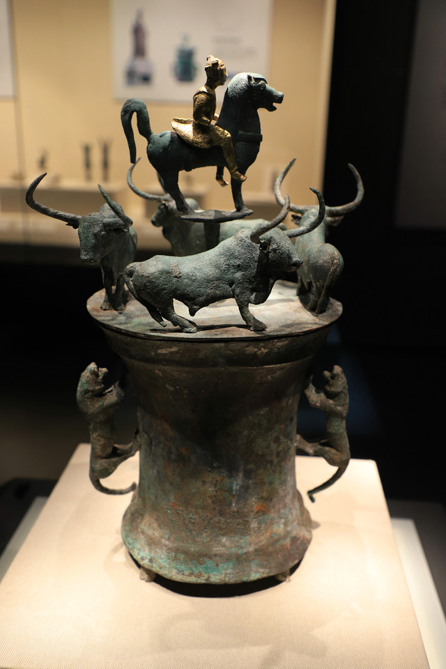 “青铜四牛鎏金骑士”贮贝器(西汉)