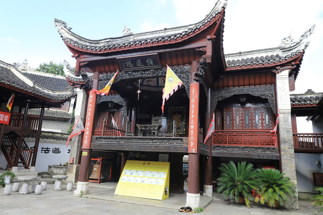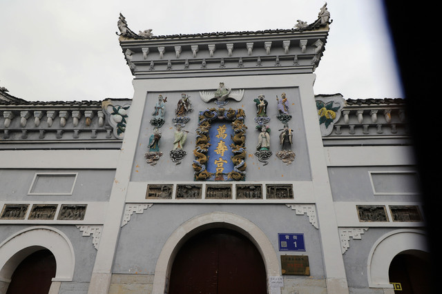 万寿宫,又称“天柱宫”、“江西会馆”,为道教宫观。清乾隆四十三年(1778年)江西客民建,嘉庆三年(1796年)和道光十二年(1832年)重修。整座宫院以正殿、配殿、两厢戏楼和生活区组成一个大建筑群