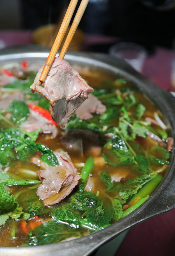 贵州之巅除了美景,当然也少不了美食。强烈推荐这家本地很有名的牛肉火锅,它位于兴发乡的杨家清蒸餐馆,在013县道南100米左右的乡场上,幸亏有当地的热心人帮忙指路才找到。这家店都是选自正宗的黄牛肉,分量足,味道好。一口口醇香滑腻的肉片简直太美味了,而人均却只要40元!