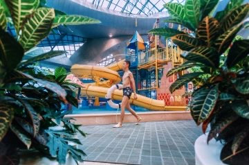 水上乐园建在玻璃温室内,有效地利用温泉水,不管刮风下雨都可以撒欢玩水。不受季节和气候影响,四季恒温冬无严寒,尤为适合亲子家庭!