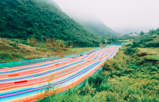 出来后户外的空气里透着一股沁人心脾的味道,葱茏的山林将阿西里西染成一片绿色。而游客中心旁边不远处的超长彩虹滑道,又好玩又刺激,登高望远,体验一番大自然的风采。