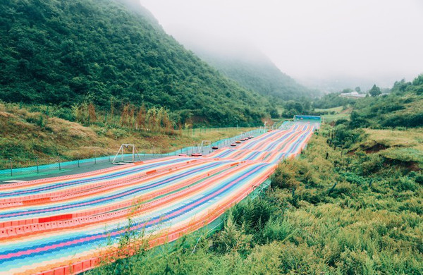 出来后户外的空气里透着一股沁人心脾的味道,葱茏的山林将阿西里西染成一片绿色。而游客中心旁边不远处的超长彩虹滑道,又好玩又刺激,登高望远,体验一番大自然的风采。